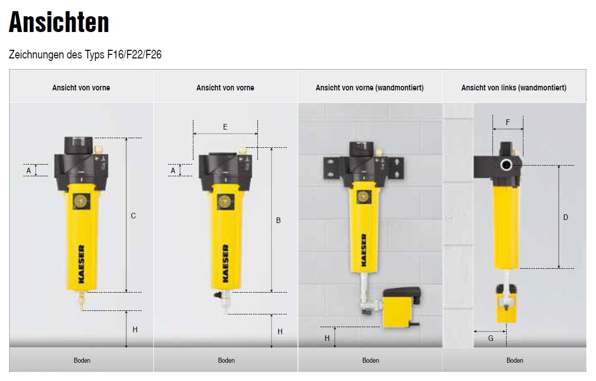 Dank ihres servicefreundlichen Aufbaus bieten sie fehlerfreies und leichtes Öffnen und Schließen des Filtergehäuses sowie schnellen und sauberen Elementwechsel. KAESER FILTER sind in vier Filtergraden verfügbar. Zwölf Gehäusegrößen bieten effiziente Filtration von 0,6 bis 32,0 m³/min.